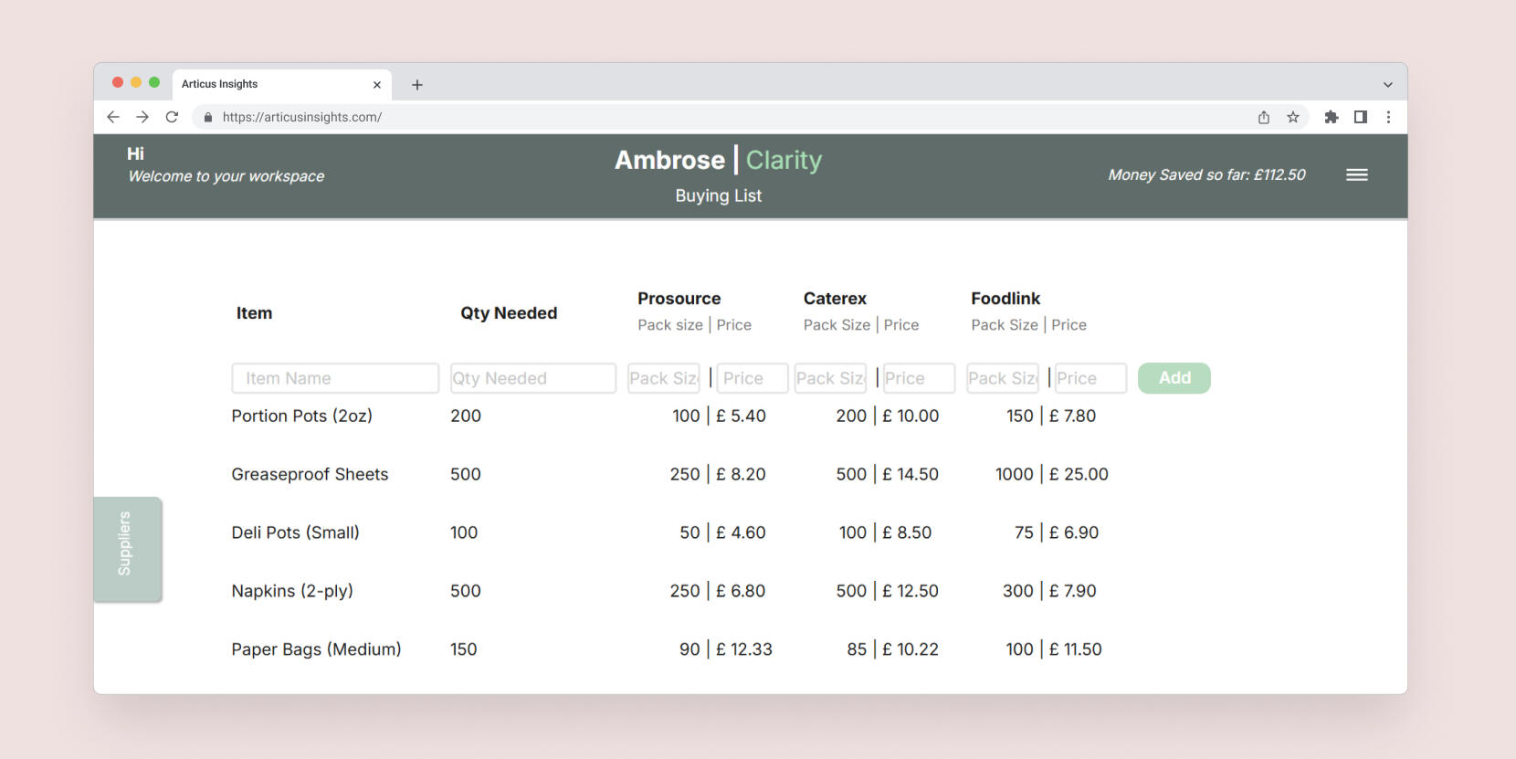 Add what you buy > Ambrose does the math > you save time + money